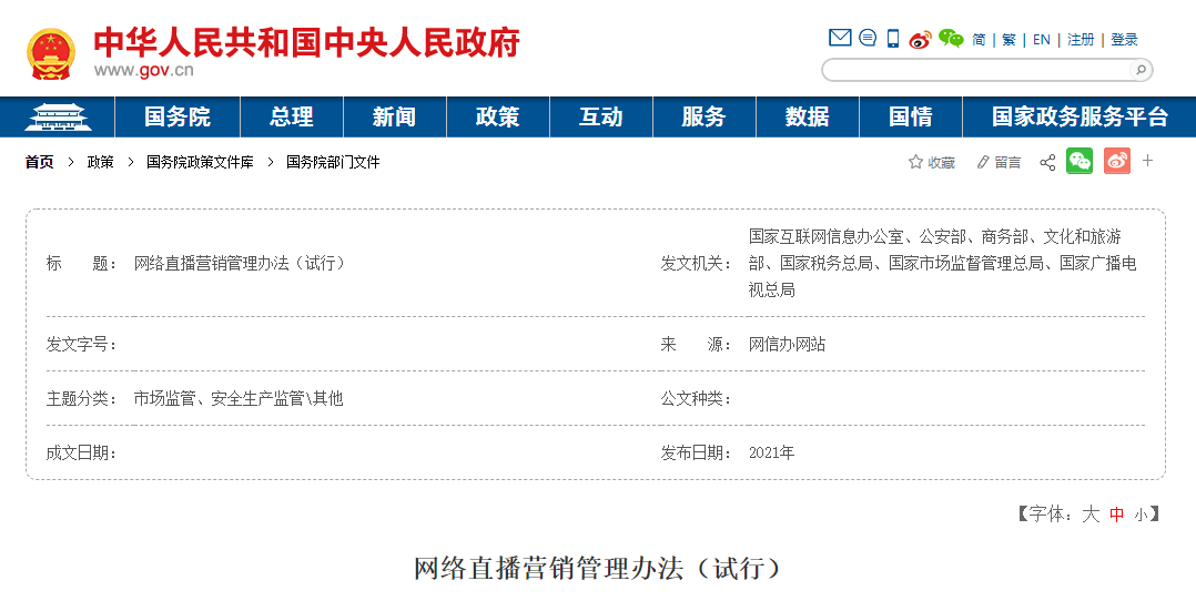 5月25日起,由国家互联网信息办公室、公安部、商务部、文化和旅游部、国家税务总局、国家市场监督管理总局、国家广播电视总局等七部门联合发布的《网络直播营销管理办法(试行)》(以下简称“《办法》”)正式实施,直播电商行业迎来强监管时代。