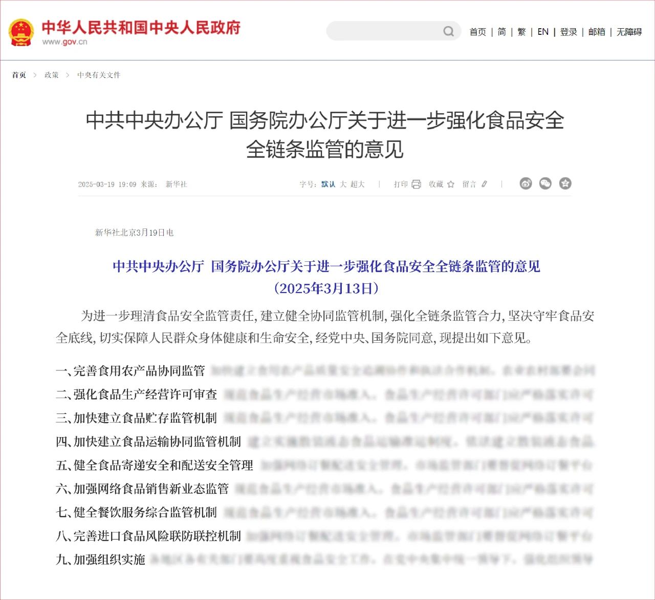 在旅游消费蓬勃发展的同时,中共中央办公厅、国务院办公厅近期印发《关于进一步强化食品安全全链条监管的意见》,明确提出要"建立健全协同监管机制,强化全链条监管合力"。政策特别强调: