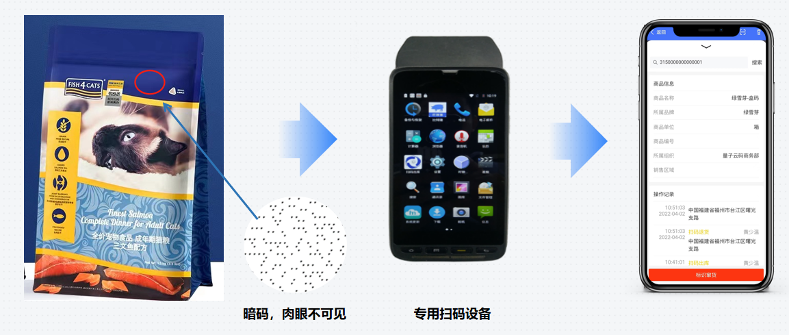 从赋码开始,量子云码会根据不同行业的生产特点,通过产线技改,实现在线赋码、信息采集关联管理,贯穿产品生产流通全过程,满足自动化工业生产要求,提升宠物食品企业整体生产效率,让企业管理更高效、更智能、更省心!